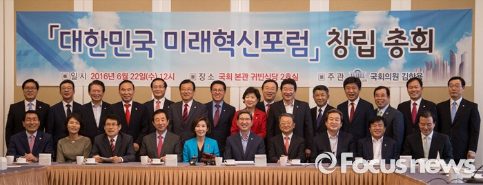 (서울=포커스뉴스) 비박계 새누리당 의원들이 주축이 된 '대한민국 미래혁신포럼' 창립 총회 참가 의원들이 22일 오후 서울 여의도 국회에서 열린 총회에서 기념촬영을 하고 있다.