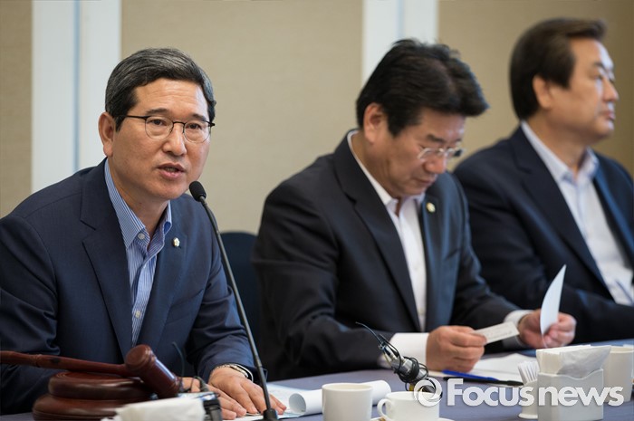 (서울=포커스뉴스)김학용(왼쪽 첫번째) 새누리당 의원이 22일 오후 서울 여의도 국회에서 열린 비박계 새누리당 의원들이 주축이 된 '대한민국 미래혁신포럼' 창립 총회에서 발언하고 있다.