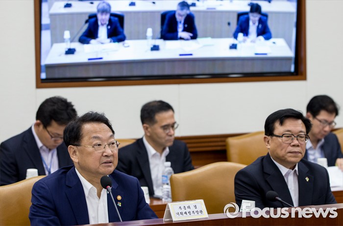 (서울=포커스뉴스) 22일 오후 서울 종로구 정부서울청사에서 열린 경제관계장관회의에 참석한 유일호 경제부총리 겸 기획재정부 장관이 모두발언을 하고 있다.