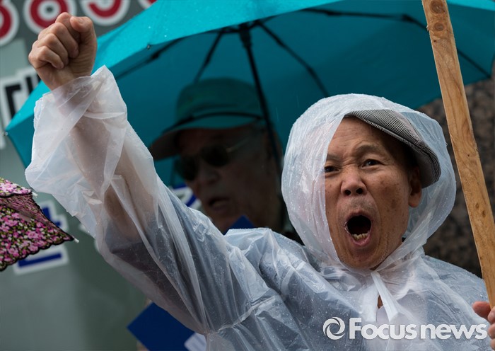 (서울=포커스뉴스) 22일 오후 서울 중구 신당동 김종필 전 총리 자택 앞에서 일제 강제동원희생자유가족협동조합 및 아시아태평양 전쟁희생자 한국유족회 회원들이 '한일협정 당시 일본외상 오히라 와 메모로 합의한 역사의 진실을 밝힐 것'을 촉구하고 있다.