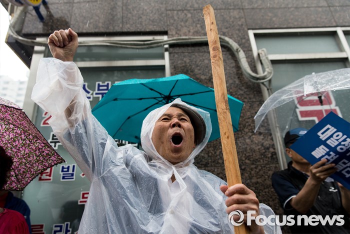 (서울=포커스뉴스) 22일 오후 서울 중구 신당동 김종필 전 총리 자택 앞에서 일제 강제동원희생자유가족협동조합 및 아시아태평양 전쟁희생자 한국유족회 회원들이 '한일협정 당시 일본외상 오히라 와 메모로 합의한 역사의 진실을 밝힐 것'을 촉구하고 있다.