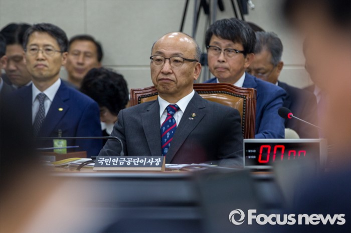 (서울=포커스뉴스) 문형표 국민연금공단 이사장이 22일 오후 서울 여의도 국회에서 열린 '보건복지위원회 전체회의'에 참석해 김상희 국회 보건복지위원회 더불어민주당 위원의 의사 발언을 듣고 있다. 이날 김 위원은 문 이사장에게 2015년 메르스 사태 당시 보건복지부 장관을 중간에 사퇴한 이유로 국정감사 출석에 불응한 것과 메르스 사태 미수습에 대해 사과할 것을 요구 했다.