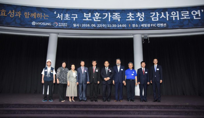 효성은 이날 행사에 서울 서초에 거주하는 호국보훈가족 135명을 초청했다. 광복회, 대한민국상이군경회, 대한민국전몰군경유족회, 대한민국전몰군경미망인회, 대한민국무공수훈자회, 대한민국고엽제전우회, 6∙25 참전유공자회, 대한민국월남전참전자회 등 다양한 국가유공자단체에 속한 어르신들이다.