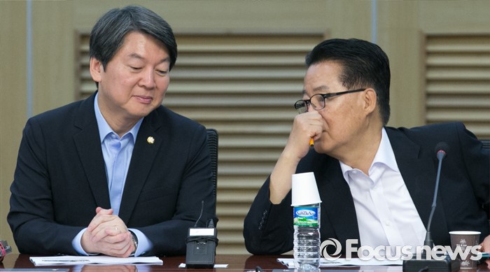 (서울=포커스뉴스) 23일 오전 서울 여의도 국회에서 열린 국민의당 19차 정책역량강화 워크숍에 참석한 안철수(왼쪽) 상임공동대표, 박지원 원내대표가 대화하고 있다.