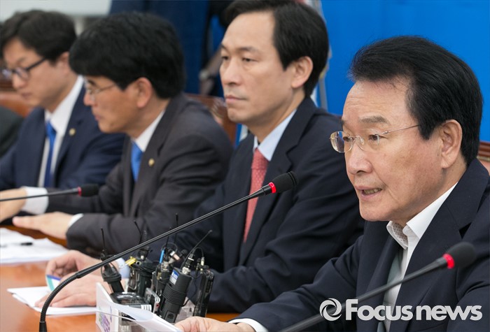 (서울=포커스뉴스) 변재일 더불어민주당 정책위의장이 23일 오전 서울 여의도 국회에서 열린 정책조정회의에 참석해 모두발언을 하고 있다.