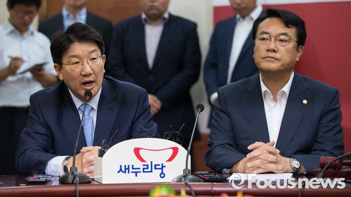 (서울=포커스뉴스) 사무총장직을 사퇴한 권성동 혁신비대위 사무총장이 23일 오전 서울 여의도 새누리당 당사에서 열린 혁신비상대책위원회 회의에서 모두발언 하고 있다.