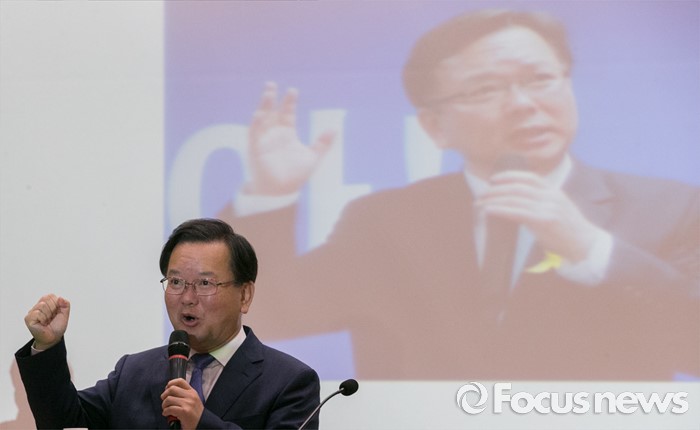 (서울=포커스뉴스) 전당대회 불출마를 선언하고 대권 도전을 시사한 김부겸 더불어민주당 의원이 23일 오전 서울 여의도 국회 의원회관에서 열린 대학생리더십 아카데미에 참석해 특강 중 구호를 외치고 있다.