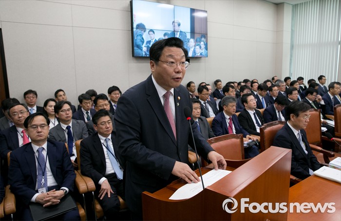 (서울=포커스뉴스) 23일 오전 서울 여의도 국회에서 열린 산업통상자원위원회 전체회의에 참석한 주형환 산업통상자원부 장관이 업무보고를 하고 있다.