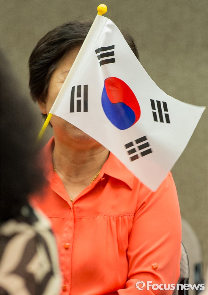(서울=포커스뉴스) 23일 오전 서울 중구 프레스센터에서 열린 '12명 탈북민들을 사지로 내모는 민변 규탄 및 고발' 기자회견에서 탈북민단체연합의 한 회원이 태극기를 흔들고 있다.