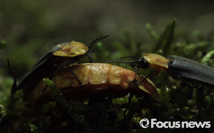 (서울=포커스뉴스) 늦반디불이 수컷들이한마리의 암컷을 두고 서로 차지 하려고 경쟁하고 있다.<사진제공=임완호감독>