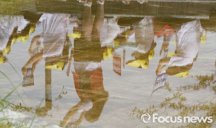 (세종=포커스뉴스) 23일 오전 세종시 정부세종청사 보건복지부 앞에서 충남민간어린이집연합회 회원들이 맞춤형보육 제도개선 및 시행연기 촉구 결의대회를 열고 있다.