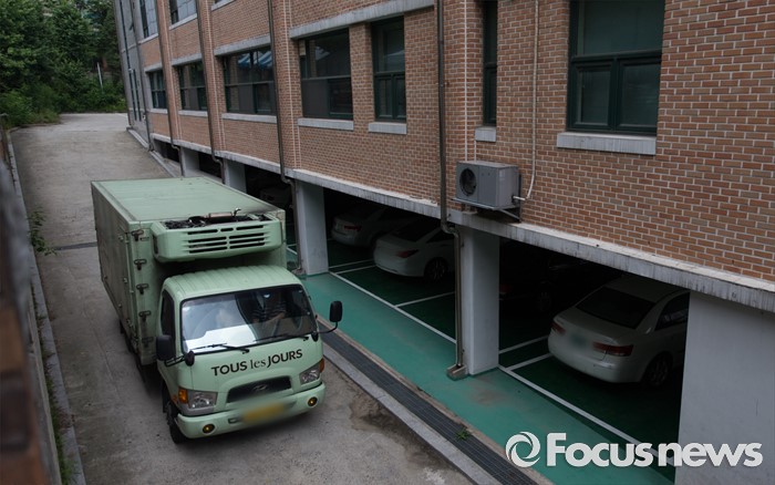 | △ 학교 나서는 제빵업체 납품차량 |