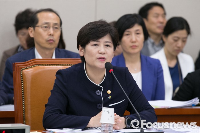 (서울=포커스뉴스) 23일 오전 서울 여의도 국회에서 열린 여성가족위원회 전체회의에 참석한 강은희 여성가족부 장관이 의원들의 질의에 답하고 있다.