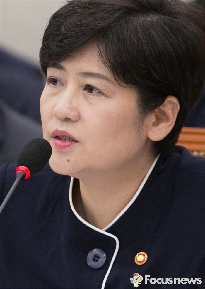 (서울=포커스뉴스) 23일 오전 서울 여의도 국회에서 열린 여성가족위원회 전체회의에 참석한 강은희 여성가족부 장관이 의원들의 질의에 답하고 있다.