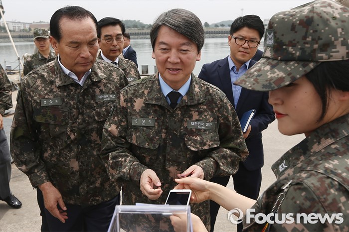 (서울=포커스뉴스) 안철수 국민의당 상임공동대표가 23일 오전 경기도 평택 해군 제2함대 사령부를 방문해 병영식 체험을 위해 제천함에 오르기 앞서 보안을 위해 핸드폰을 맡기고 있다.