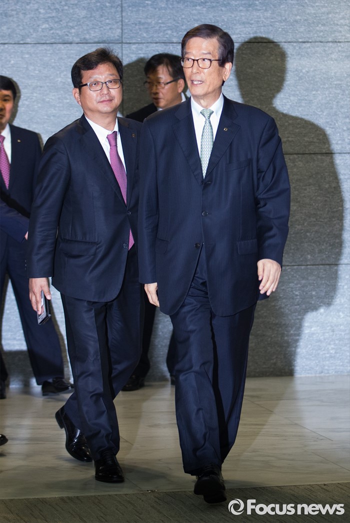 (서울=포커스뉴스) 이동걸(오른쪽) KDB산업은행 회장이 23일 오후 서울 영등포구 KDB산업은행 본점에서 열린 산업은행 혁신 추진방안 기자간담회에 참석하고 있다.