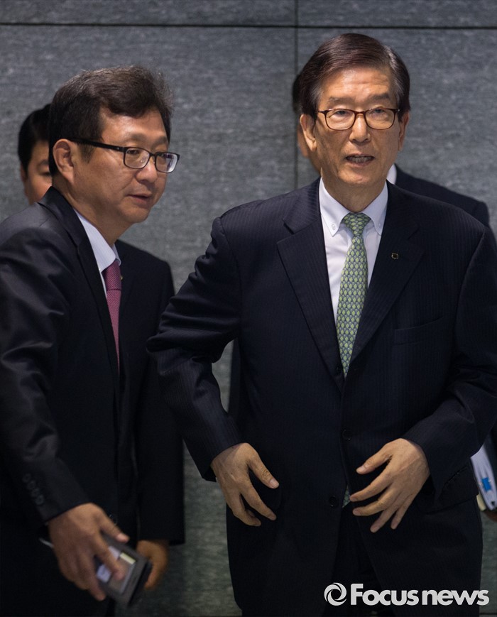 (서울=포커스뉴스) 이동걸(오른쪽) KDB산업은행 회장이 23일 오후 서울 영등포구 KDB산업은행 본점에서 열린 산업은행 혁신 추진방안 기자간담회에 참석하고 있다.