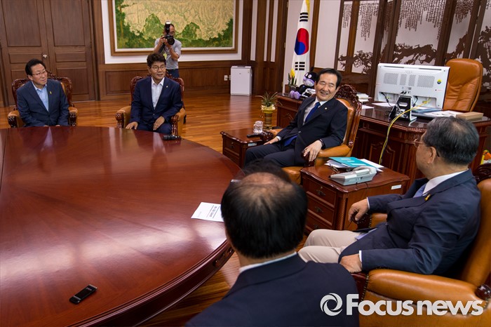 (서울=포커스뉴스) 정세균(가운데) 국회의장이 23일 오후 서울 여의도 국회에서 장휘국 전국시도교육감협의회 회장을 비롯한 교육감들과 면담 하고 있다. 왼쪽부터 민병희 강원도교육감, 이청연 인천시교육감, 정세균 국회의장, 이재정 경기도교육감, 장휘국 광주시교육감.