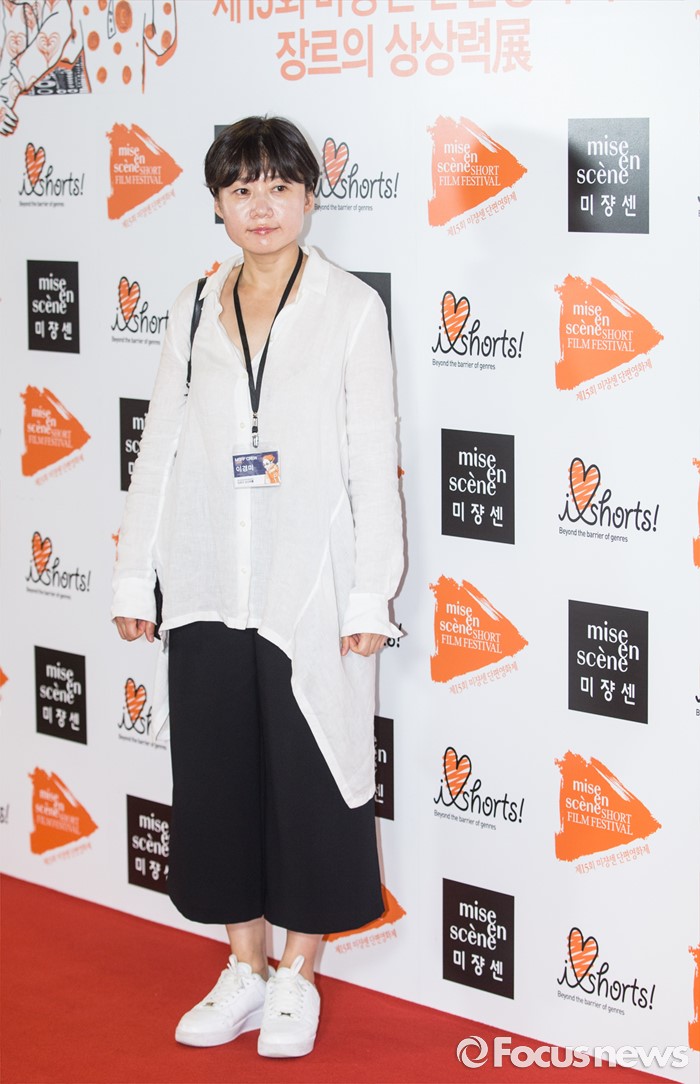 (서울=포커스뉴스) 23일 오후 서울 마포구 롯데시네마 홍대입구점에서 열린 '제15회 미쟝센 단편영화제' 개막 포토월 행사에 참여한 이경미 감독이 포토타임을 갖고 있다.