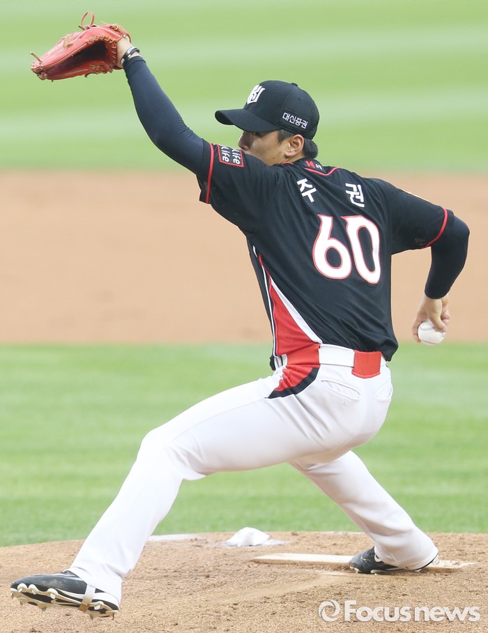 (서울=포커스뉴스) 23일 서울 잠실구장에서 열린 2016 프로야구 kt-두산 경기에서 1회말 kt 선발투수 주권이 투구하고 있다.