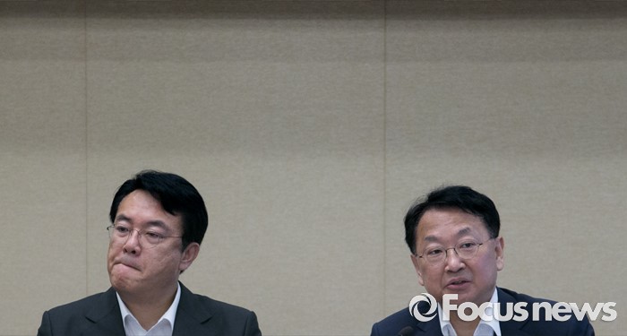 (서울=포커스뉴스) 24일 오전 서울 여의도 국회 귀빈식당에서 열린 2016년 하반기 경제정책방향 당정간담회에 참석한 유일호 경제부총리 겸 기획재정부 장관이 발언하고 있다. 왼쪽은 정진석 새누리당 원내대표.
