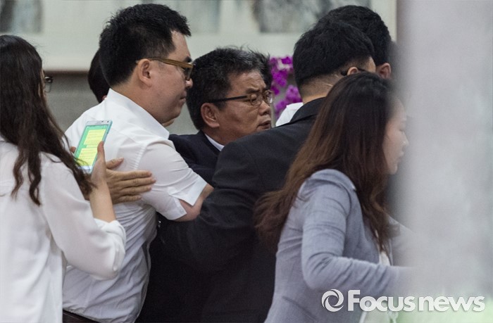 (서울=포커스뉴스) 전국경제인연합회로부터 우회적인 지원을 받았다는 의혹을 받고 있는 추선희 어버이연합 사무총장이 24일 오전 취재진을 피해 서울중앙지방검찰청으로 출석하고 있다.