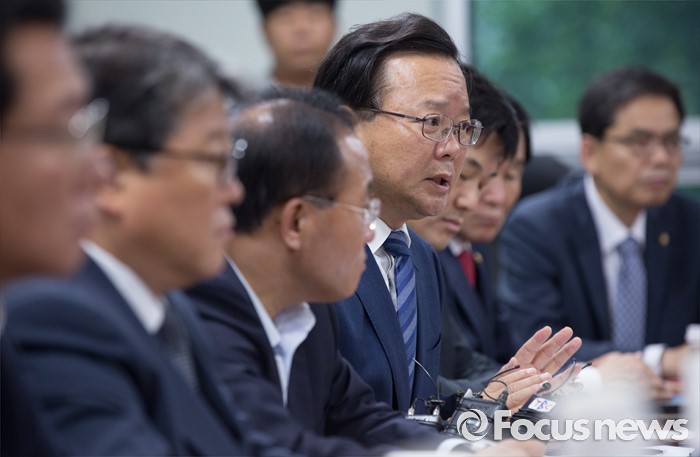 (서울=포커스뉴스) 24일 오후 서울 여의도 국회 의원회관에서 열린 영남권 신공항 백지화 관련 여야 대구지역 의원들과 강호인 국토교통부 장관의 면담에 참석한 김부겸 더불어민주당 의원이 발언하고 있다.