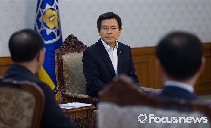(서울=포커스뉴스) 황교안 국무총리와 대구지역 국회의원들이 24일 오후 서울 종로구 정부서울청사에서 영남권 신공항 백지화 관련 면담하고 있다.