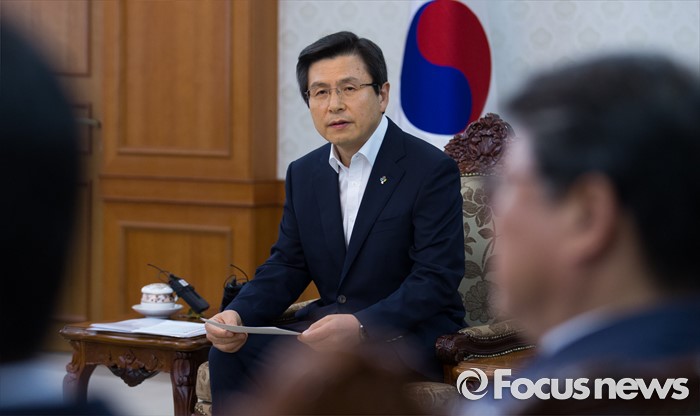 (서울=포커스뉴스) 황교안 국무총리와 대구지역 국회의원들이 24일 오후 서울 종로구 정부서울청사에서 영남권 신공항 백지화 관련 면담하고 있다.
