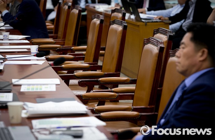 (서울=포커스뉴스) 24일 오후 서울 여의도 국회에서 열린 산업통상자원위원회 전체회의에 대부분 의원들이 불참해 빈 자리가 보이고 있다.