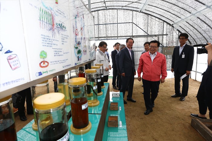 (고성=포커스뉴스) 이동필 농림축산식품부 장관이 24일 경남 고성군 농업기술센터에서 재정부 법제처장 등이 참석한 가운데 규제개혁 현장포럼이 열렸다. 이 장관이 포럼에 앞서 고성군 농업기술센터 시설을 둘러보고 있다. <사진제공=농림축산식품부>