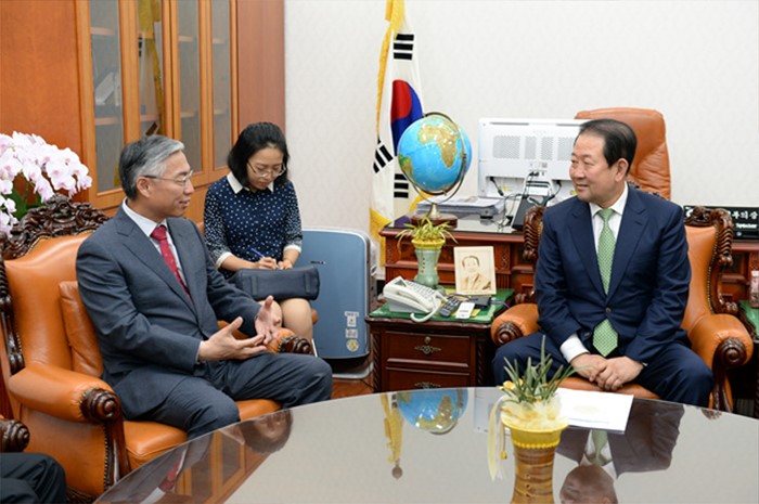 (서울=포커스뉴스) 국민의당 소속 박주선 국회 부의장이 24일 서울 여의도 국회를 방문한 추궈홍 주한중국대사와 면담을 하고 있다. <사진제공=박주선 의원실>