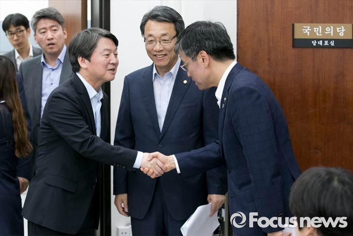 | △ 기재부 1차관과 인사하는 안철수 |