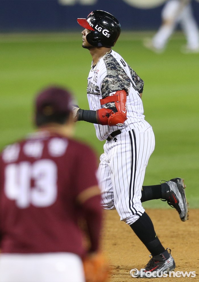 (서울=포커스뉴스) 24일 서울 잠실구장에서 열린 2016 프로야구 넥센-LG 경기 5회말 LG 히메네스가 좌중월 솔로 홈런을 치고 그라운드를 달리고 있다.