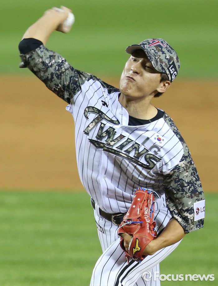 (서울=포커스뉴스) 24일 서울 잠실구장에서 열린 2016 프로야구 넥센-LG 경기 5회초 LG 최동환이 투구하고 있다.