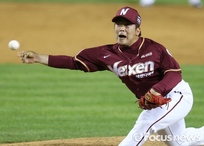 (서울=포커스뉴스) 24일 서울 잠실구장에서 열린 2016 프로야구 넥센-LG 경기에서 넥센 투수 마정길이 7회말에 투구하고 있다.