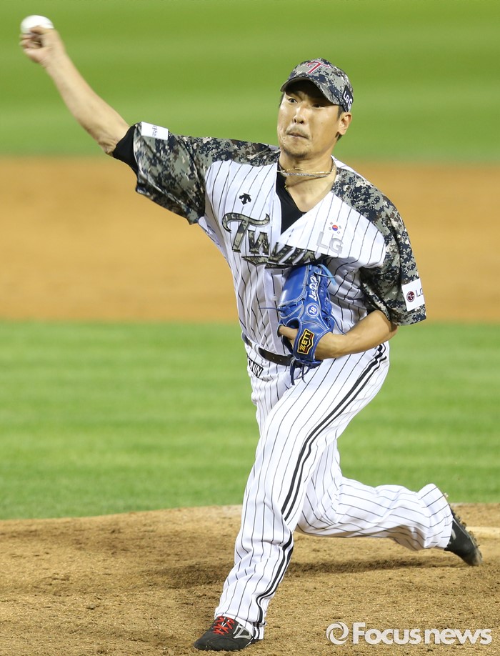 (서울=포커스뉴스) 24일 서울 잠실구장에서 열린 2016 프로야구 넥센-LG 경기에서 LG 투수 이동현이 8회에 투구하고 있다.
