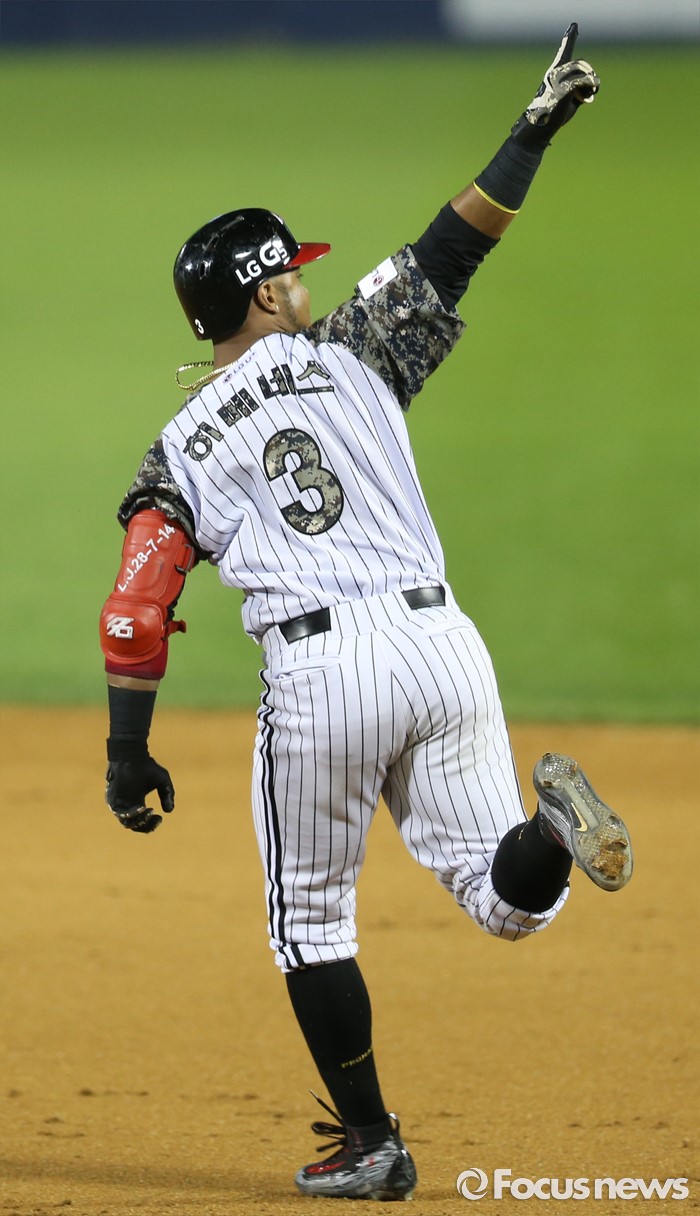(서울=포커스뉴스) 24일 서울 잠실구장에서 열린 2016 프로야구 넥센-LG 경기 8회말 2사 1,2루에서 LG 히메네스가 역전 3점 홈런을 치고 환호하며 뛰어 나가고 있다.