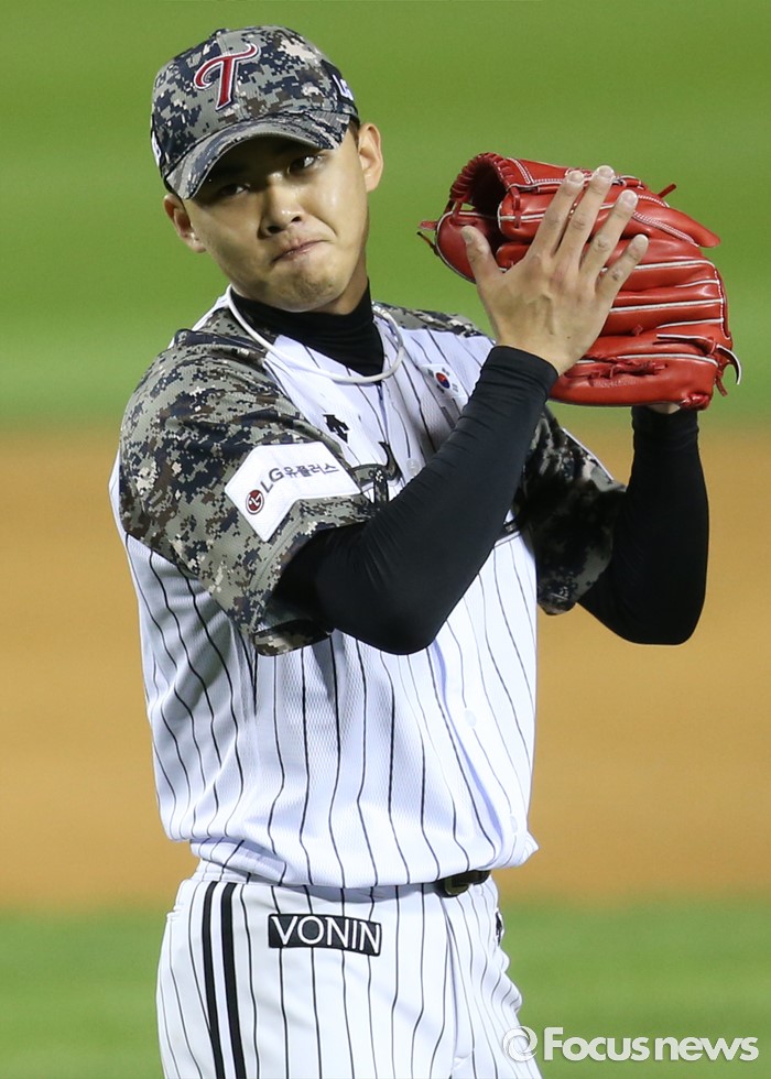 (서울=포커스뉴스) 24일 서울 잠실구장에서 열린 2016 프로야구 넥센-LG 경기에서 LG 마무리 투수 임정우가 넥센 고종욱을 아웃시키고 박수치고 있다.