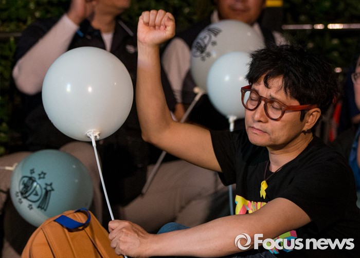 (서울=포커스뉴스) 24일 오후 서울 서초구 현대자동차 본사 앞에서 열린 '유성기업 故 한광호씨 100일ㆍ현대차 진격의 날' 집회에 참석한 김조광수 감독이 슬픔에 잠겨 있다.