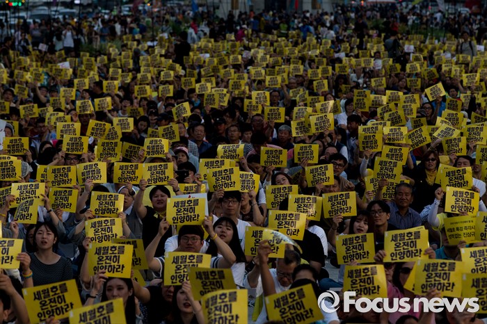 (서울=포커스뉴스) 25일 오후 서울 종로구 광화문광장에서 열린 '세월호 특별법 개정 촉구 범국민문화제'에 참석한 시민들이 세월호 특별법 개정과 온전한 인양을 촉구하고 있다.