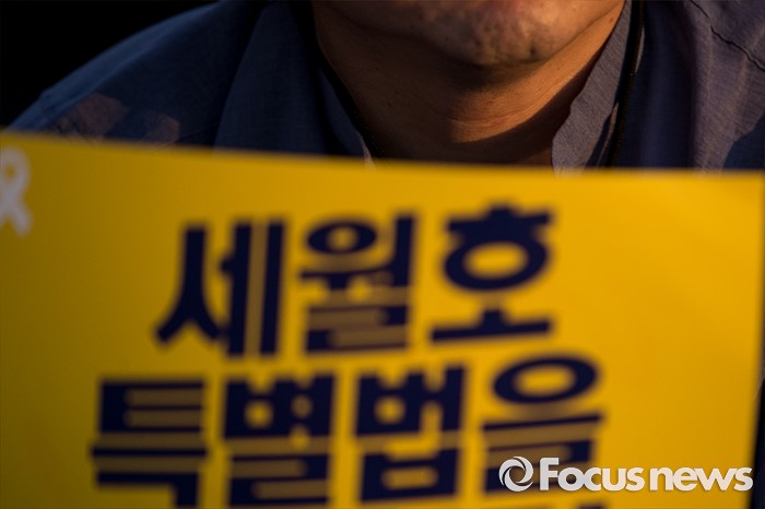 (서울=포커스뉴스) 25일 오후 서울 종로구 광화문광장에서 열린 '세월호 특별법 개정 촉구 범국민문화제'에 참석한 시민들이 세월호 특별법 개정과 온전한 인양을 촉구하며 손피켓을 들고 있다.