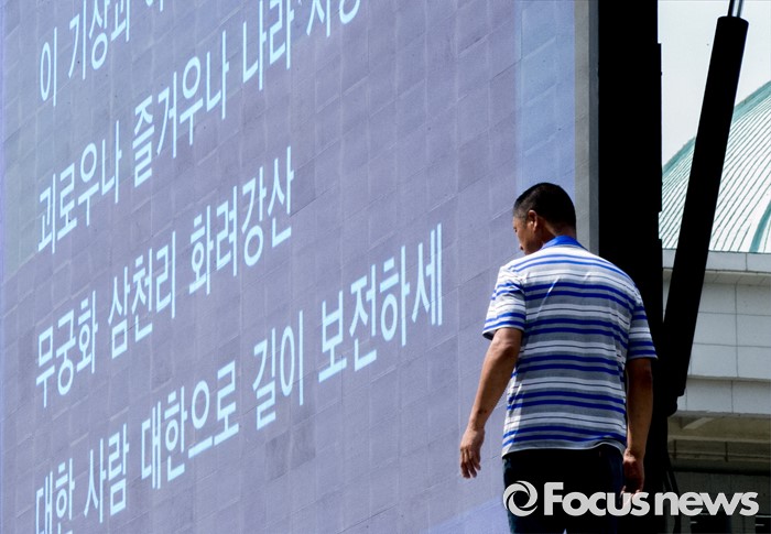 (서울=포커스뉴스) 26일 오후 서울 여의도 국회 의원회관 앞 차량에 미래로 가는 바른 역사 협의회 발대식 및 식민사학 규탄대회를 중계하는 전광판이 설치되어 있다.