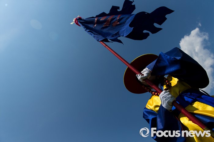 (서울=포커스뉴스) 26일 오후 서울 동작구 국립서울현충원 겨레얼마당에서 국방부 군악대와 의장대가 호국보훈의 달을 맞아 전통의장 및 퍼레이드 시범을 선보이고 있다.
