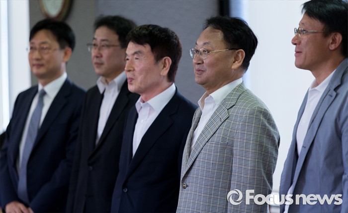 (서울=포커스뉴스) 26일 오후 서울 중구 전국은행연합회에서 유일호(오른쪽 두번째) 부총리 겸 기획재정부 장관이 브렉시트 관련 긴급 경제상황점검회의에 앞서 기념촬영을 하고 있다.