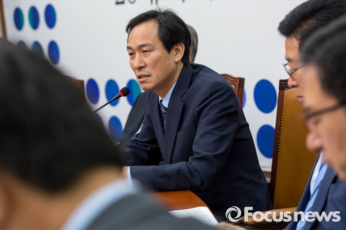 (서울=포커스뉴스) 우상호 더불어민주당 원내대표가 27일 오전 서울 여의도 국회에서 열린 비상대책위원회의에 참석해 모두발언 하고 있다.