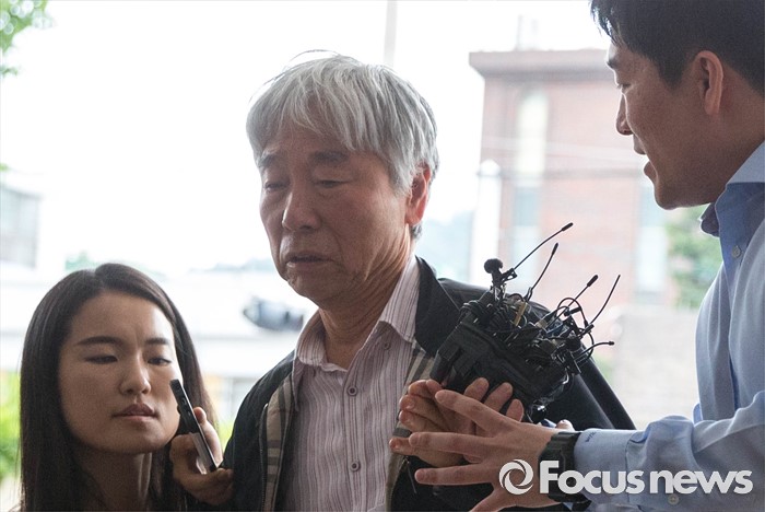 (서울=포커스뉴스) 27일 오전 이우환(80) 화백이 위작 판정이 내려진 작품 13점의 피해자 겸 참고인 신분으로 서울 중랑구 서울지방경찰청 지능범죄수사대에 출석하고 있다.