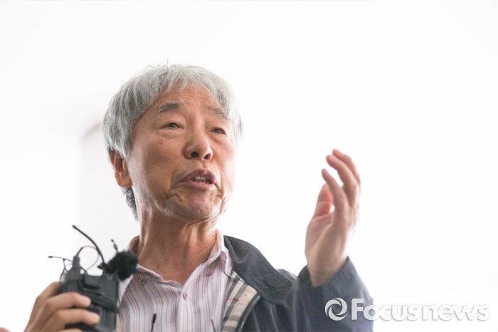 | △ 취재진 질문에 답변하는 이우환 화백 |