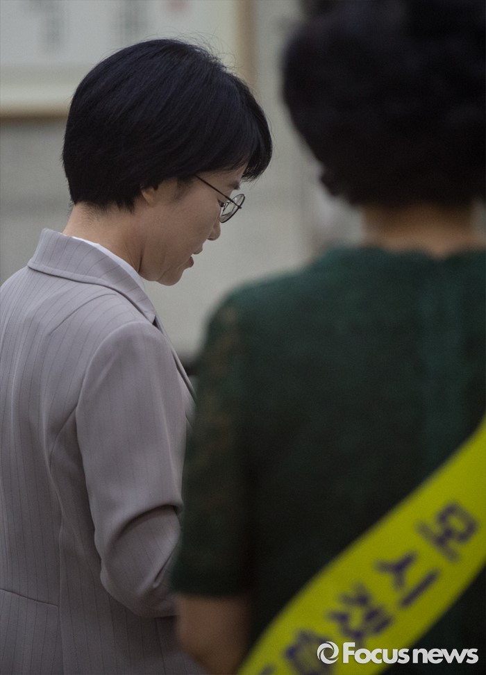 (서울=포커스뉴스) 20대 총선 홍보물 리베이트 수수 과정에 관여한 혐의를 받고 있는 박선숙 국민의당 의원이 27일 오전 서울서부지방검찰청에 조사를 받기 위해 출석하고 있다.