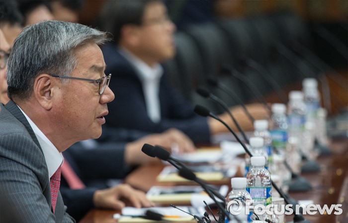 (서울=포커스뉴스) 27일 오전 서울 영등포구 금융투자협회 회의실에서 열린 브렉시트 관련 증권사 사장단 회의에 참석한 황영기 금융투자협회장이 모두발언을 하고 있다.
